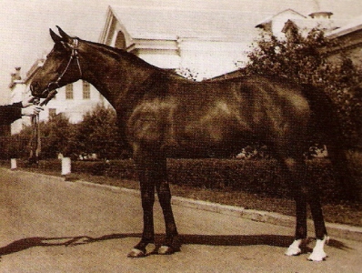 "Next came Ptashka, a full sister to *Pietuszok, Topol, Potencja and Platina, all by Priboj and out of Taktika, and a half-sister to Trapecia by Pomeranets. This is a superior performance family, with Topol highly respected as a Triple Crown winner. Taktika's dam Krona was by the French import Kann out of the English (Crabbet) mare Star of the Hills, whose sire *Raswan was a Skowronek son. In tail-female, the family traces to the Egyptian mare Selma through her daughter Selima, by *Astraled. Ptashka was a sleek, well-conformed and typey mare, proving this by winning the Championship at the All-Union Exhibition in 1956. The same honor was won by her equally beautiful daughter Palmira (by *Salon) in 1979 when twelve years old. The latter's son *Parik won the Certificate of First Degree. Ptashka was to be followed by four of her daughters: Palmira's full sister *Pustinia, a typey chestnut, and two bays and a chestnut, all by Aswan. The chestnut was Pesnia, now well-known because of her son *Pesniar (by Nabeg). Another son, Pesennik, an extremely handsome chestnut by Kumir, is now at Tersk. At two, he won the M.I. Kalinin race, and according to photos, he could be a candidate for halter honors as well. The other two Ptashka daughters were Pantera and *Parketnaia, who was listed but not shown on that day. Recently a half-interest in *Parketnaia was sold for $365,000 at the Karho sale in Scottsdale. Although Pantera was a little plain compared to the others, these were all excellent mares, regardless of different sires. Pantera's daughter *Pozicia, by *Muscat, is well worthy of her sire."